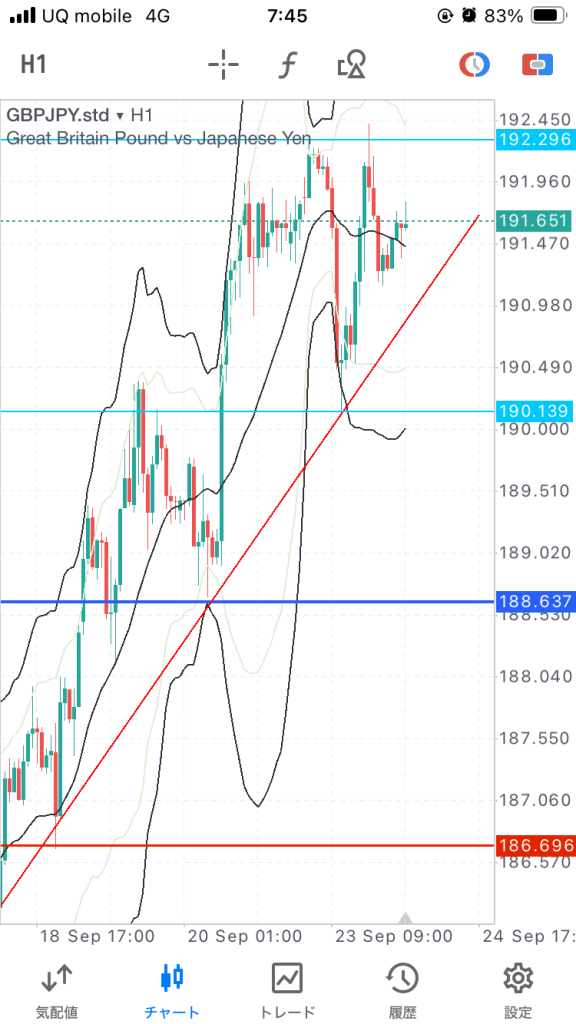 今日はこんな感じ。昨日はチキン利食いしてしまったものの、高値を目指す動きを捉えてプラス。今日も1時間のラインぎわで勝負狙っていきます。