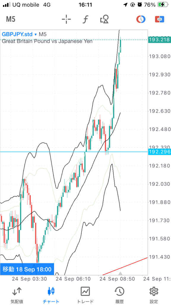 少し捻ってから上に伸びました。だいたいの目標地点で利確。