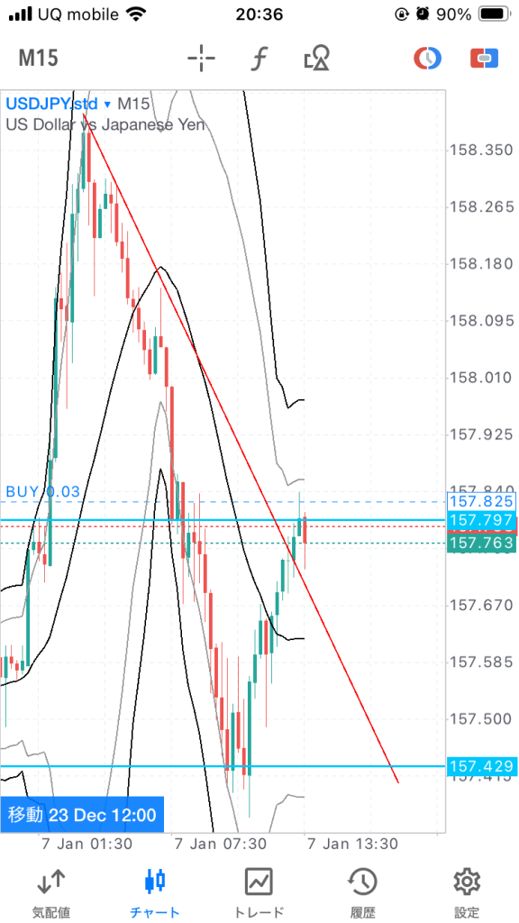 まずはドル円。本日の高値まで上げてきたので決済。+45