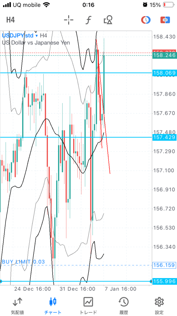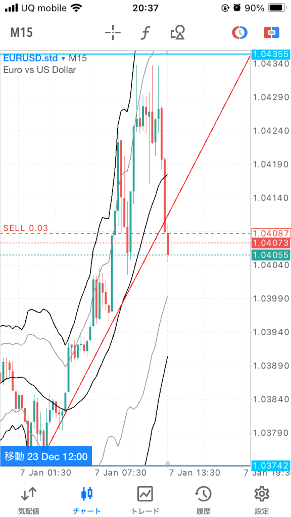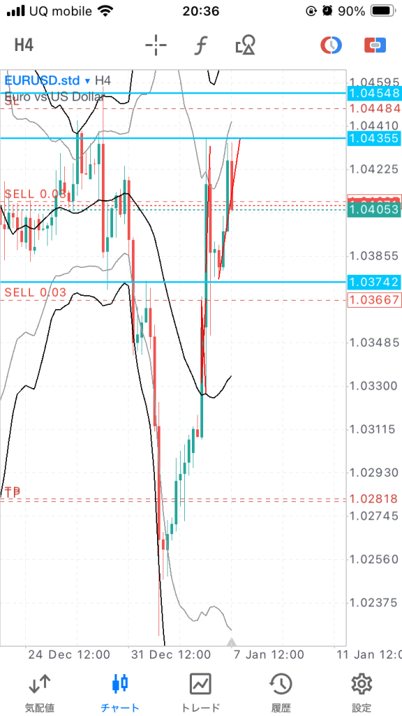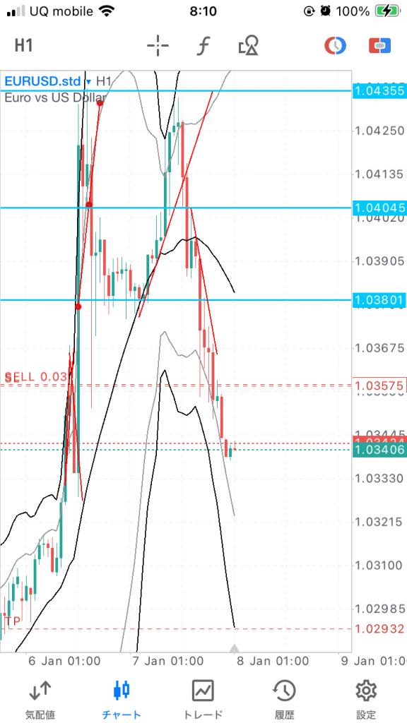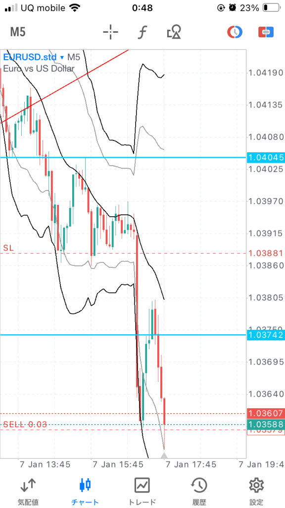 ユロドルまだ落ちる気配ありなので、5分の損切り入れて放置して寝ます。
