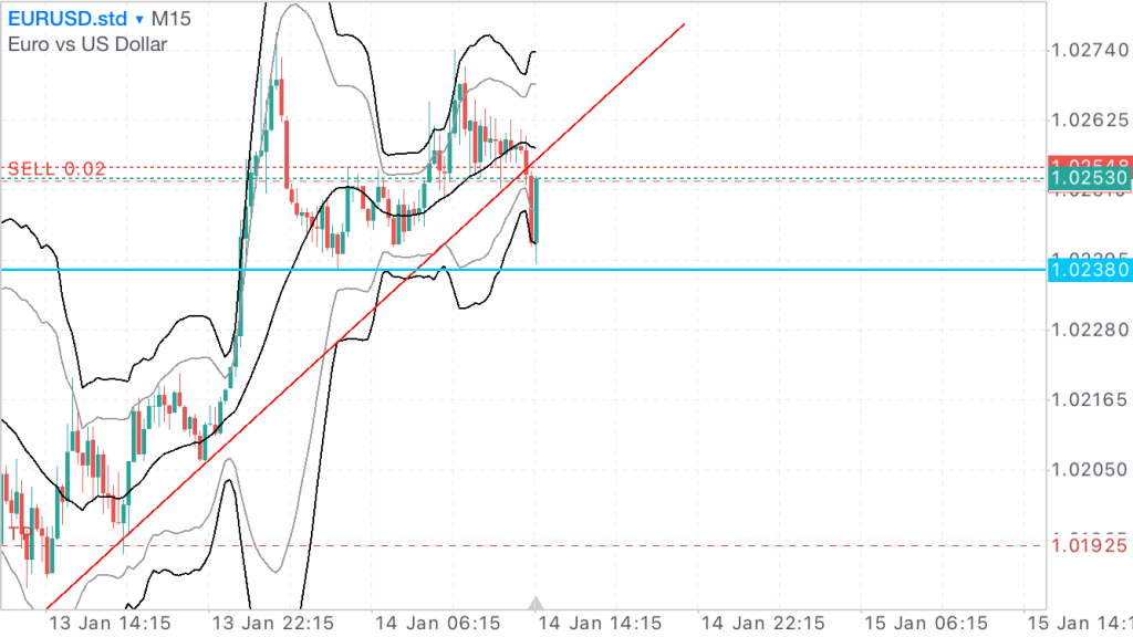 ユロドル。戻り売り狙い。15分トレンドライン割れでショート。