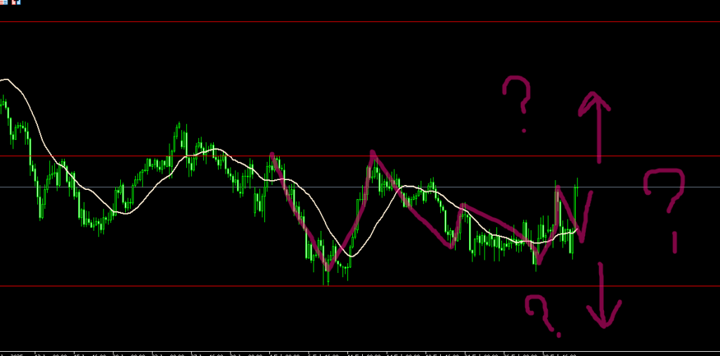 日足の方向感なし。4時間も微妙。レンジ相場が続いていてなかなかきついです。