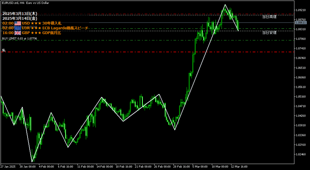 まだ大きな動きなし。当日安値付近で買い注文。